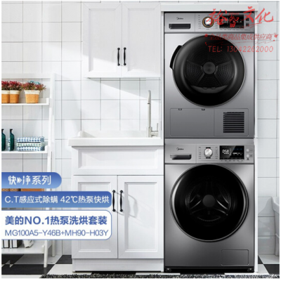 首页 > 装具 > 盥洗、厨房用织物制品 > 美的(Midea) MG100A5-Y46B+MH90-H03Y 洗烘套装 10kg滚筒洗衣机全自动+9kg热泵烘干机 智能家电 快净系列 SKU:yzwhyp309666