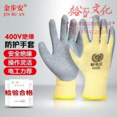 金步安 黄色400v低压绝缘手套防滑耐磨橡胶防护劳保手套电工作业涂层手套 SKU:yzwhyp309687