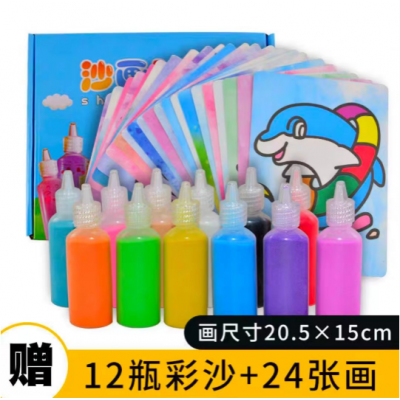 首页 > 办公用品 > 教具 > 儿童沙画彩沙套装 宝宝diy手工制作材料包( 24张彩底+12瓶彩沙)
