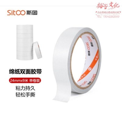 斯图sitoo 棉纸双面胶带 3124海报胶带双面胶带 粘贴家用公司双面胶 高粘性 24mm*9米 单卷装 SKU:yzwhyp309706