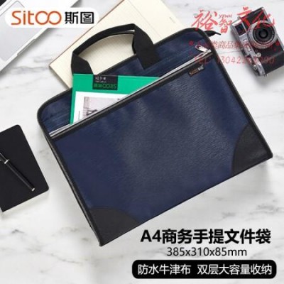 斯图(sitoo)办公手提文件袋 A4双层竖纹藏蓝38.5*31cm 单个装 SKU:yzwhyp309748