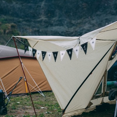 首页 > 装具 > 天篷、遮阳篷、帐篷 > 黑狗 户外露营氛围三角旗野营派对装饰节日团队生日小旗子 露营氛围串旗 4m/12面旗 SKU:yzwhyp201902