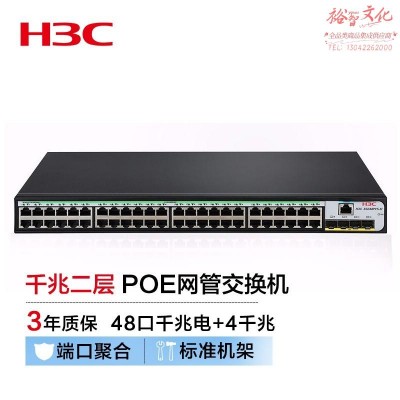 新华三(H3C)S5048PV5-EI-PWR 48口千兆电+4千兆光纤口二层WEB网管企业级网络交换机 POE供电370W SKU:yzwhyp600801