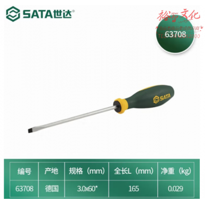 世达63708 G系列双色柄一字形螺丝批3x60MM螺丝刀 SKU:yzwhyp104988