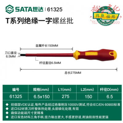 世达(SATA)61325T系列双色柄一字绝缘螺丝批6.5x150MM SKU:yzwhyp105010
