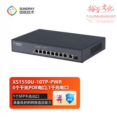 首页 > 信息化设备 > 交换设备 > 信锐 锐灵 系列10口全千兆PoE交换机,8个千兆POE电口,1个千兆电口,1个SFP千兆光口;XS1550U-10TP-PWR SKU:yzwhyp309964