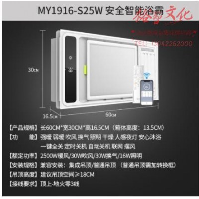 美的 浴霸智能风暖厨房卫生间集成吊顶 取暖照明换气摇摆扇叶吹风多功能一体APP智能遥控浴霸 MY1916-S25W SKU:yzwhyp309986