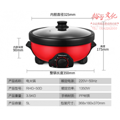 荣事达(Royalstar)电火锅分体式5L家用多功能电热锅电煮锅电炒锅RHG-50D SKU:yzwhyp310059
