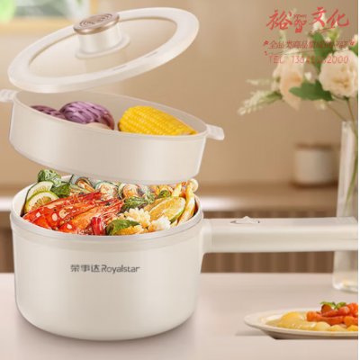 荣事达(Royalstar)电煮锅 家用多功能学生宿舍泡面电火锅蒸煮煎炒锅电热锅小电锅电炒锅带蒸笼 机械+蒸笼 DZG20E3 SKU:yzwhyp310090
