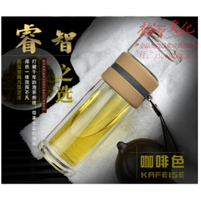 首页 > 用具 > 其他厨房用具 > 华象玻璃杯 新款茶水分离双层玻璃杯泡茶师男士女士提绳便携玻璃杯 290ml 咖啡色 SKU:yzwhyp600897