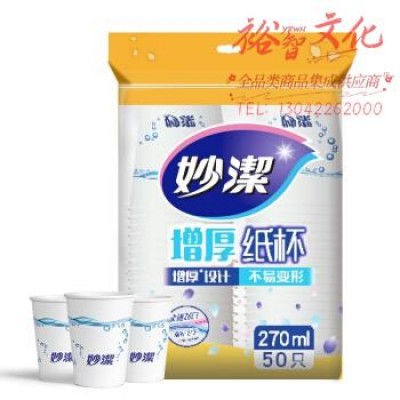 妙洁(MIAOJIE ) 纸杯一次性杯子 增厚咖啡杯商务杯 中号270ml*50只 *5组 SKU:yzwhyp600926