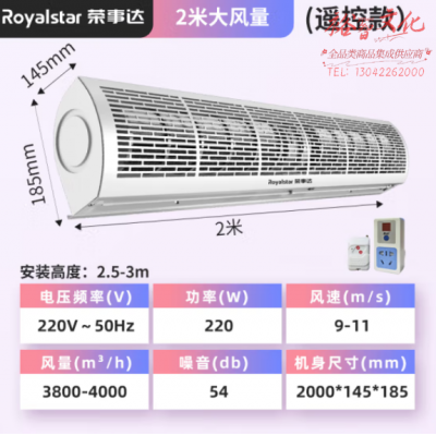 荣事达(Royalstar)风幕机商用风帘机商超市门口空气幕工业门头风闸机2米遥控RSD-FM20C SKU:yzwhyp310172