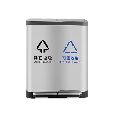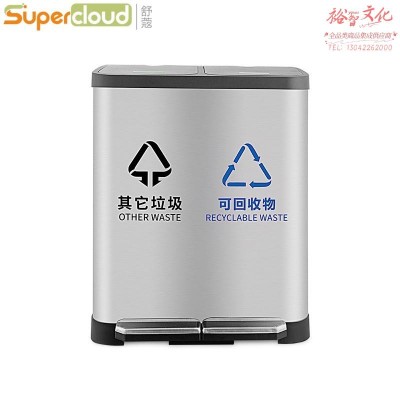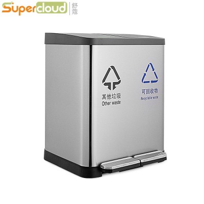舒蔻(Supercloud)不锈钢垃圾桶脚踏式酒店商用办公室家用垃圾分类大号带盖缓降 双桶18L SKU:yzwhyp202035