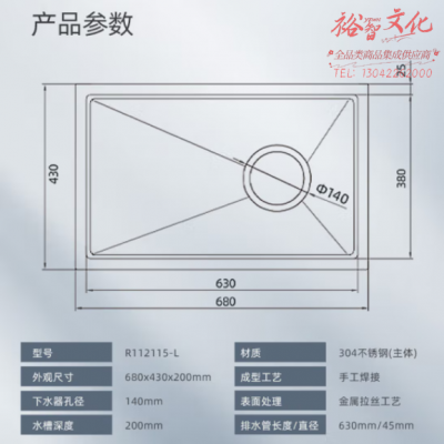 首页 > 用具 > 其他厨房用具 > 荣事达(Royalstar)304不锈钢手工厨房水槽 洗菜盆一体盆洗碗池 大容量单槽R112115-L 68*43 落槽 右侧加大排水 不含安装 SKU:yzwhyp310178