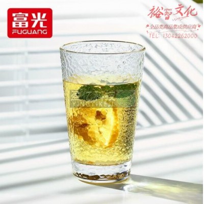 富光 玻璃杯 简约锤纹水杯 家用办公喝水茶杯子 加厚耐高温早餐牛奶果汁杯 矮款 320ML SKU:yzwhyp600955