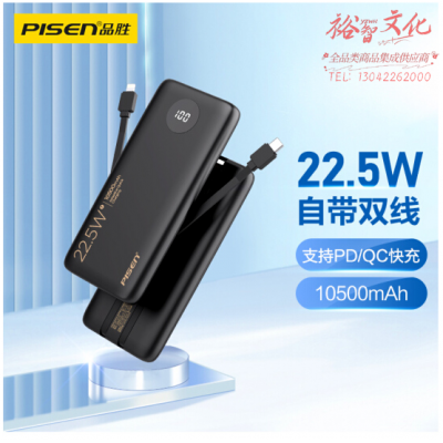 品胜充电宝自带线22.5W快充户外移动电源超薄便携10500毫安时 SKU:yzwhyp310284