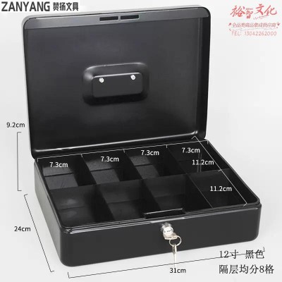 赞扬 9004手提财务印章收纳盒带锁铁制盒子证件保险收纳箱收纳储物盒黑色12寸 SKU:yzwhyp202072