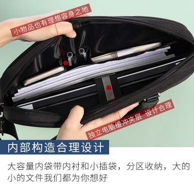 首页 > 办公用品 > 文具 > 康百F6863商务手提公文包 单肩男士电脑包 大容量资料收纳包 会议包 办公手提袋 黑色丨可拆卸肩带丨尺寸:380*300*60MM SKU:yzwhyp202126