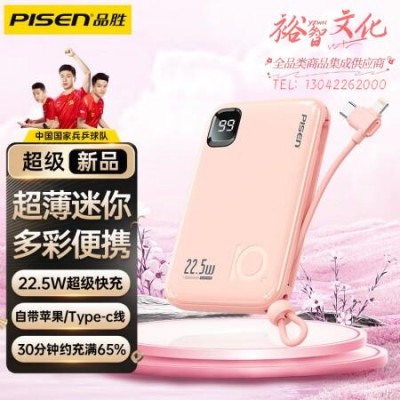 品胜严选PISEN 10000毫安时充电宝22.5W超级快充移动电源自带线超薄迷你小巧便携通用华为苹果手机 粉 SKU:yzwhyp310368