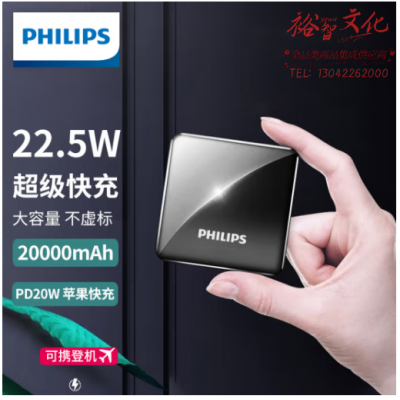 飞利浦20000mAh充电宝 双向快充移动电源 黑灰渐变色 SKU:yzwhyp310385