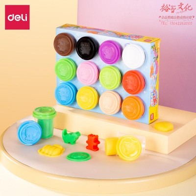 得力(deli)67804 12色彩泥 学生橡皮泥黏土 儿童玩具手工DIY粘土套装 大杯装(共672g) SKU:yzwhyp601039