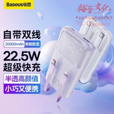 首页 > 电气设备 > 蓄电池及充电装置 > 倍思 自带线充电宝22.5W超级快充20000毫安时 兼容苹果PD20W快充大容量移动电源 适用于苹果14/13华为小米 紫 SKU:yzwhyp310564
