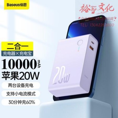 倍思 二合一充电宝充电器10000毫安时 PD20W双向快充移动电源 带插头快充便携适用苹果华为小米手机 紫 SKU:yzwhyp310577