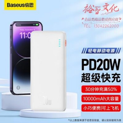 倍思 充电宝10000毫安时支持苹果20W 双向快充迷你大容量移动电源小巧便携可上飞机 适用于苹果14/13华为 白 SKU:yzwhyp310633