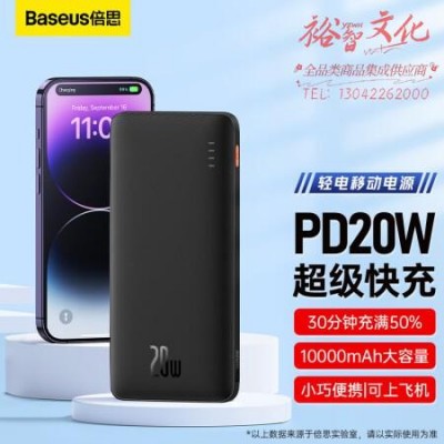 倍思 充电宝10000毫安时支持苹果20W 双向快充迷你大容量移动电源小巧便携可上飞机 适用于苹果14/13华为 黑 SKU:yzwhyp310635