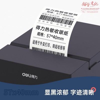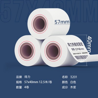 得力(deli)高档莱茵河热敏收银纸 57*40mm美团外卖po超市小票纸 4卷收银机打印纸 足米足径 SKU:yzwhyp202219