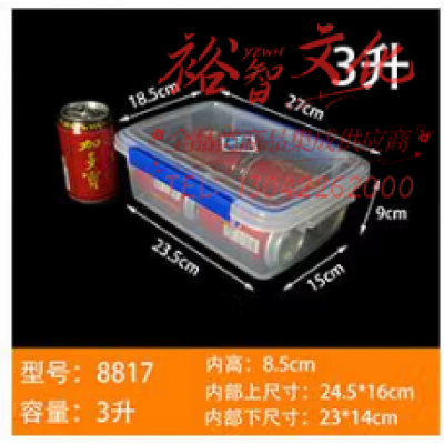 保鲜盒商用食品级塑长方形带盖大容量 双扣透明2号【27*18*9】3L SKU:yzwhyp310815