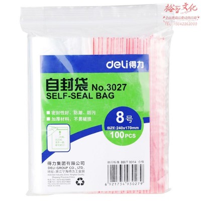 得力(deli)食品密封袋8号24*17cm 加厚防水PE透明收纳防尘 100只透明 3027 SKU:yzwhyp310839