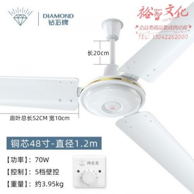 钻石牌(DIAMOND) 吊扇48/56吋轻音大风力铁叶吊式电风扇YH 纯铜三叶/48寸 白色(五档-大风力)寝室推荐 SKU:yzwhyp310879