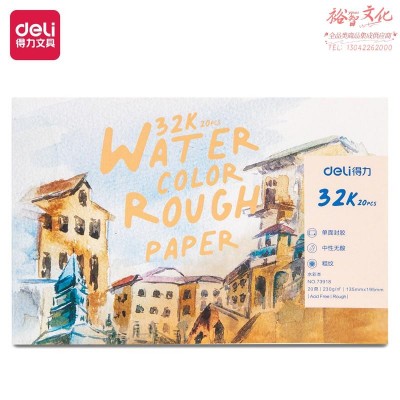 得力(deli)73918水彩纸32k32开230g棉木混浆水彩本 固体水彩颜料本手绘画画本 20页/本 SKU:yzwhyp601045