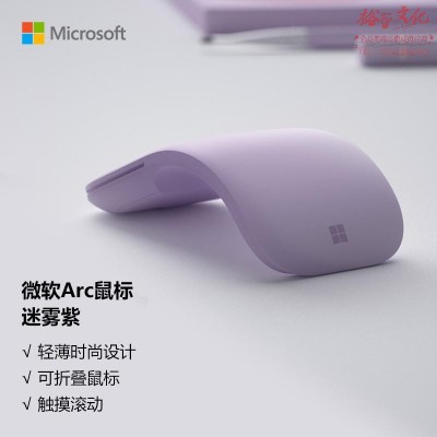 微软 (Microsoft) Arc 鼠标 迷雾紫 弯折设计 轻薄便携 全滚动平面 蓝影技术 蓝牙鼠标 人体工学 办公鼠标 SKU:yzwhyp311126