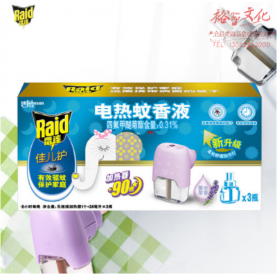 雷达 (Raid) 佳儿护电蚊香液 3瓶装 90晚+无线加热器 薰衣草香100017950524 SKU:yzwhyp311290