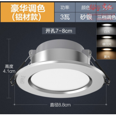 欧普照明(OPPLE)五只装LED筒灯天花灯 铝材砂银款【3瓦双色】 开孔7-8厘米 SKU:yzwhyp105666