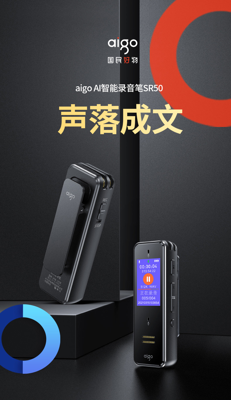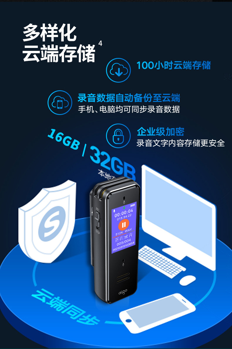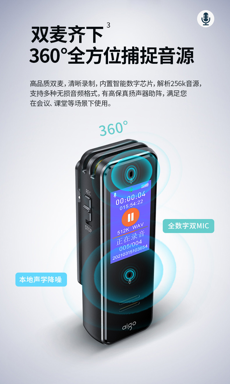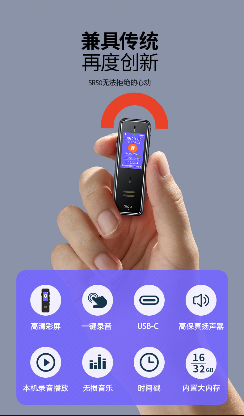 首页 > 广播、电视、电影设备 > 组合音像设备 > 会议、广播及音乐欣赏系统 > 爱国者aigo 32G AI智能录音笔SR50 专业高清降噪 会议录音转文字 录音器 同声传译 微型便携 黑色 SKU:yzwhyp105705