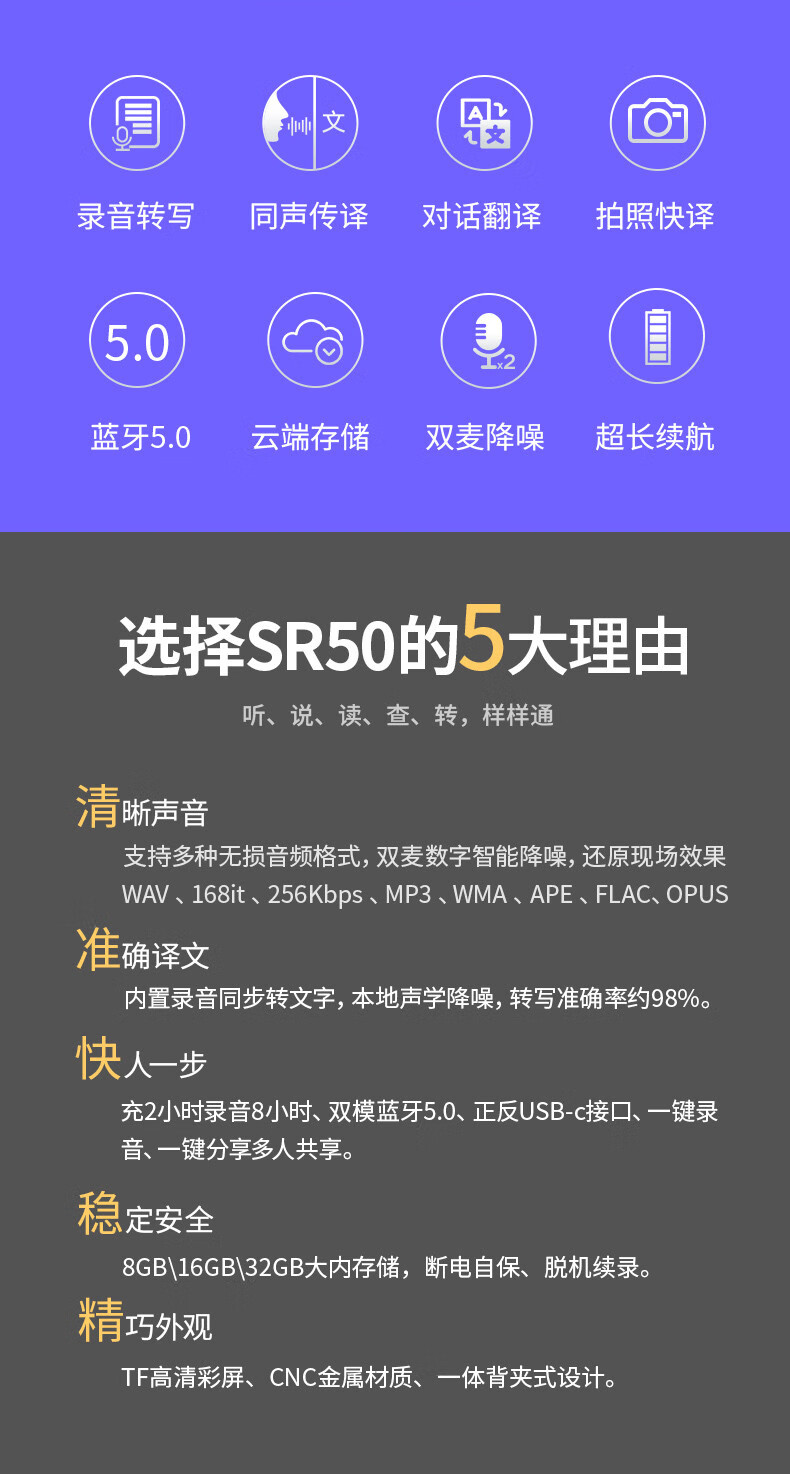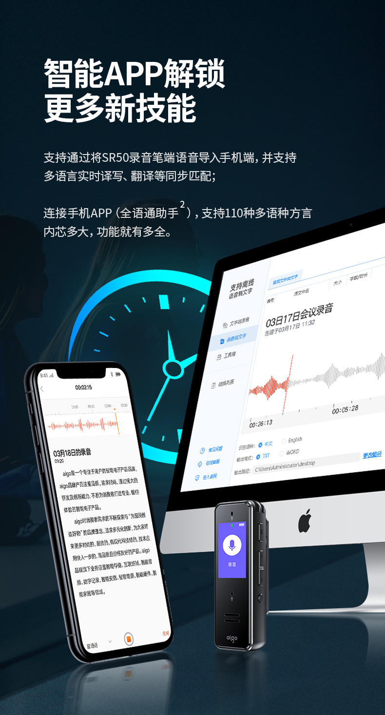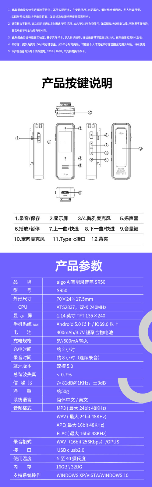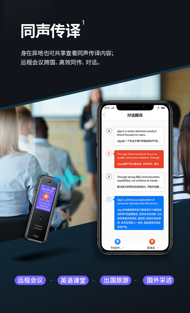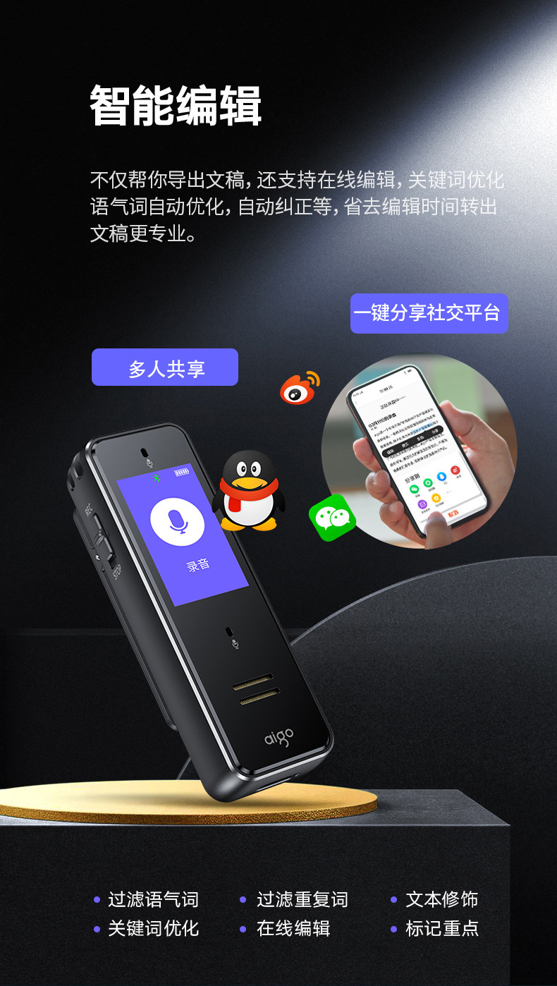 首页 > 广播、电视、电影设备 > 组合音像设备 > 会议、广播及音乐欣赏系统 > 爱国者aigo 32G AI智能录音笔SR50 专业高清降噪 会议录音转文字 录音器 同声传译 微型便携 黑色 SKU:yzwhyp105705