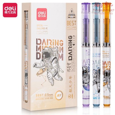 得力S897航天中性笔 0.5mm全针管直液笔 签字笔 黑色12支/盒S897 SKU:yzwhyp105712