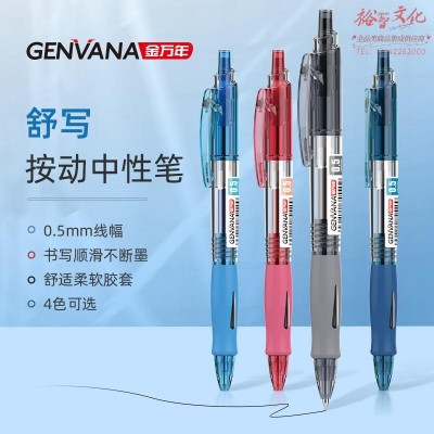 金万年(Genvana)舒写按动0.5mm中性笔学生碳素黑色按压式子弹头水性签字笔 0.5mm【24支黑笔】 SKU:yzwhyp202320