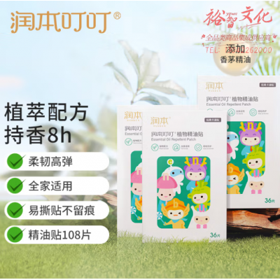 润本(RUNBEN)叮叮植物精油贴108片-36片×3盒 SKU:yzwhyp311522