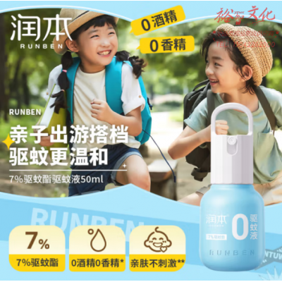 润本(RUNBEN)儿童驱蚊液50ml 防蚊虫叮咬驱蚊喷雾防蚊水7%驱蚊酯-煤气罐款无香 SKU:yzwhyp311578