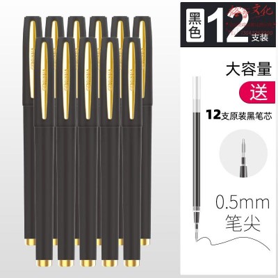 金万年(Genvana)大容量磨砂中性笔0.7商务办公子弹头1.0mm水性笔黑色签字笔 【黑色12支】+12支黑笔芯/0.5mm SKU:yzwhyp202326