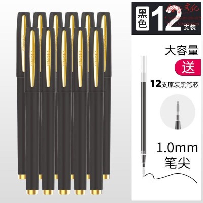 金万年(Genvana)大容量磨砂中性笔0.7商务办公子弹头1.0mm水性笔黑色签字笔 【黑色12支】+12支黑笔芯/1.0mm SKU:yzwhyp202328