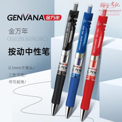 金万年(Genvana)0.5mm按动中性笔碳素黑色学生用考试子弹头水性签字笔芯 0.5mm【12支红笔】+20支红芯+笔筒 SKU:yzwhyp202330