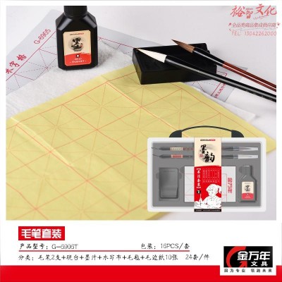 金万年(Genvana) 学生书法练字毛笔7件套装软毛狼毫大楷兼毫中楷文房四宝套 SKU:yzwhyp202341