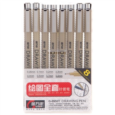 金万年(Genvana)针管笔勾线笔中性笔签字笔绘图笔水笔(8支套装) 黑色G-0950T SKU:yzwhyp202364