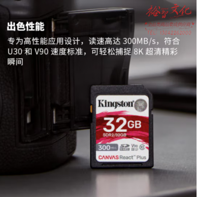 首页 > 办公设备 > 镜头及器材 > 金士顿(Kingston)32GB SD存储卡 U3 V90 8K 相机内存卡 高速sd卡大卡 读速300MB/s 写速260MB/s SDR2/32GB SKU:yzwhyp601417