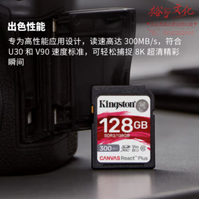 首页 > 办公设备 > 镜头及器材 > 金士顿(Kingston)128GB SD存储卡 U3 V90 8K 相机内存卡 高速sd卡大卡 读速300MB/s 写速260MB/s SDR2/128GB SKU:yzwhyp601421
